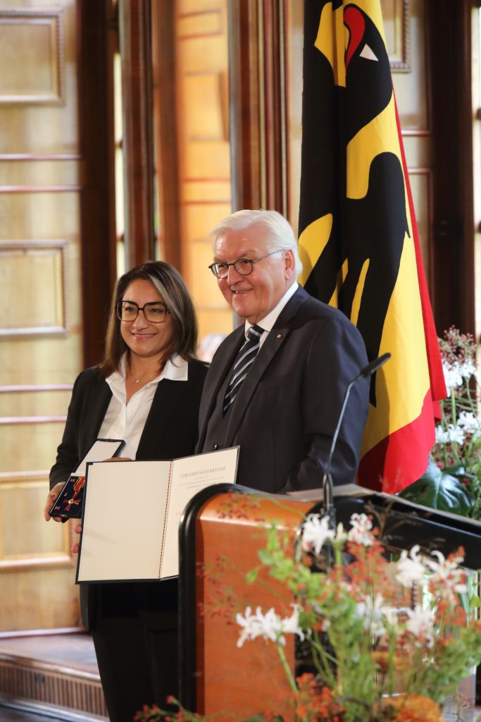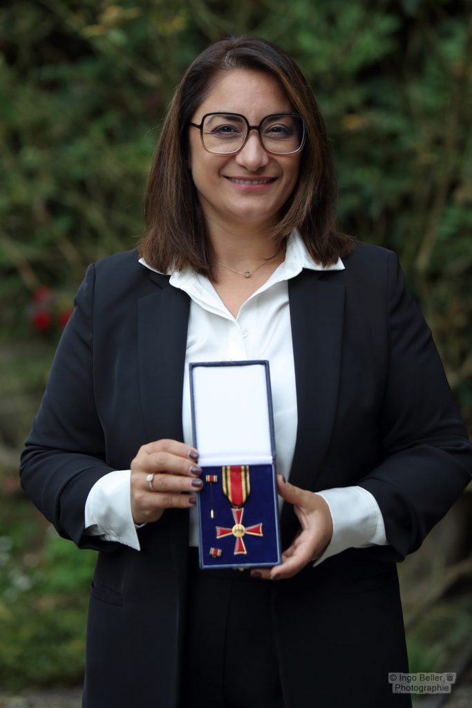 Rechtsanwältin Zemfira Dlovani wurde am 16. Oktober 2025 auf Burg Namedy in Andernach durch Bundespräsident Frank-Walter Steinmeier mit dem Verdienstorden der Bundesrepublik Deutschland für ihr herausragendes Engagement ausgezeichnet. Als Juristin und Mitbegründerin des Zentralrats der Êzîden setzt sie sich ehrenamtlich für Integration, Rechtsberatung und die Aufarbeitung des Völkermords an den Jesiden ein – insbesondere für Geflüchtete und vulnerable Gruppen. Bundespräsident Frank-Walter Steinmeier ehrte sie damit als starke Stimme für gesellschaftlichen Zusammenhalt und Menschenrechte, was ein ermutigendes Signal für unser Land ist.